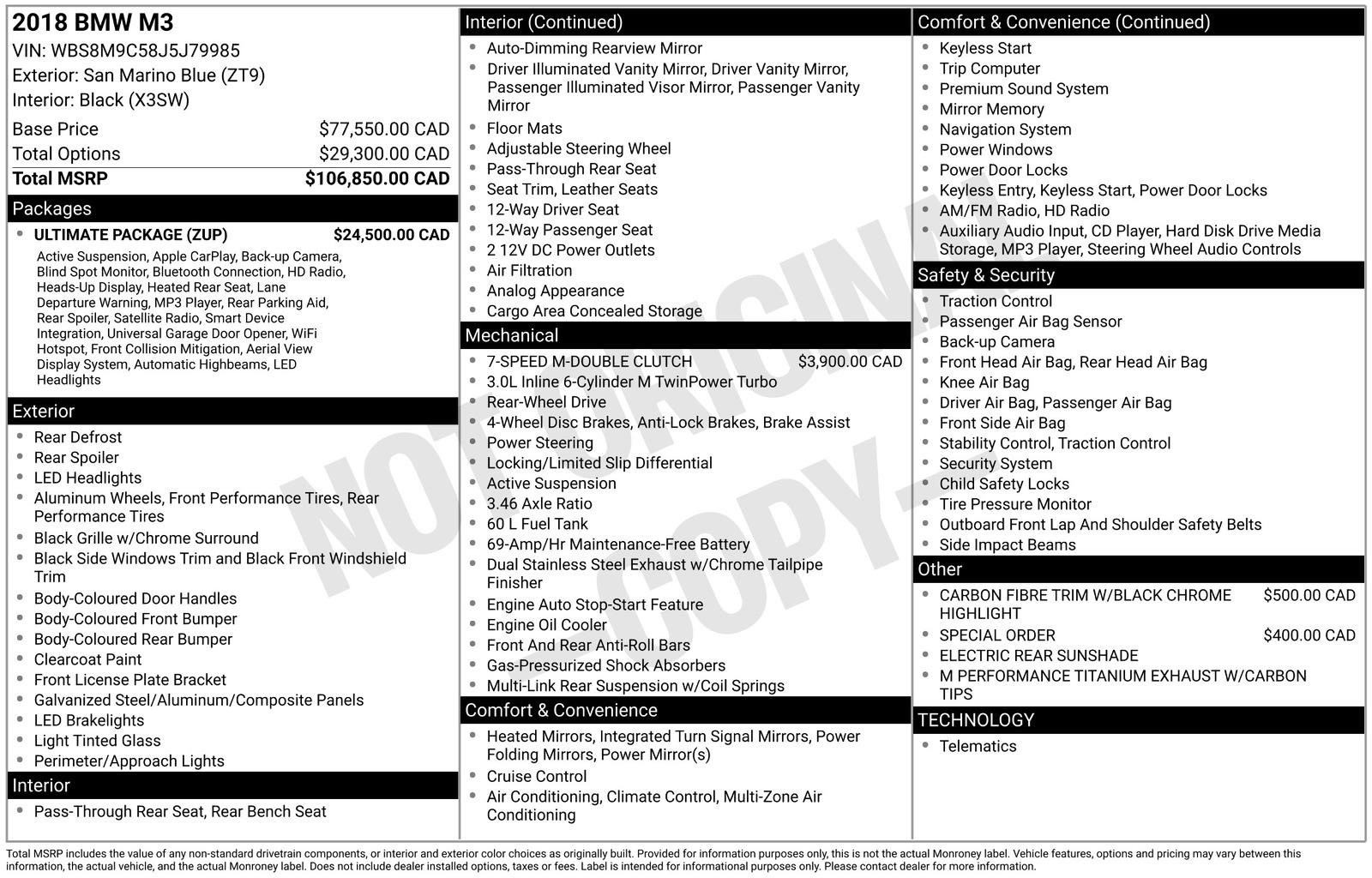 2018 BMW M3 COMPETITION ~ ULTIMATE PACKAGE ~ INDIVIDUAL SPECIFICATION